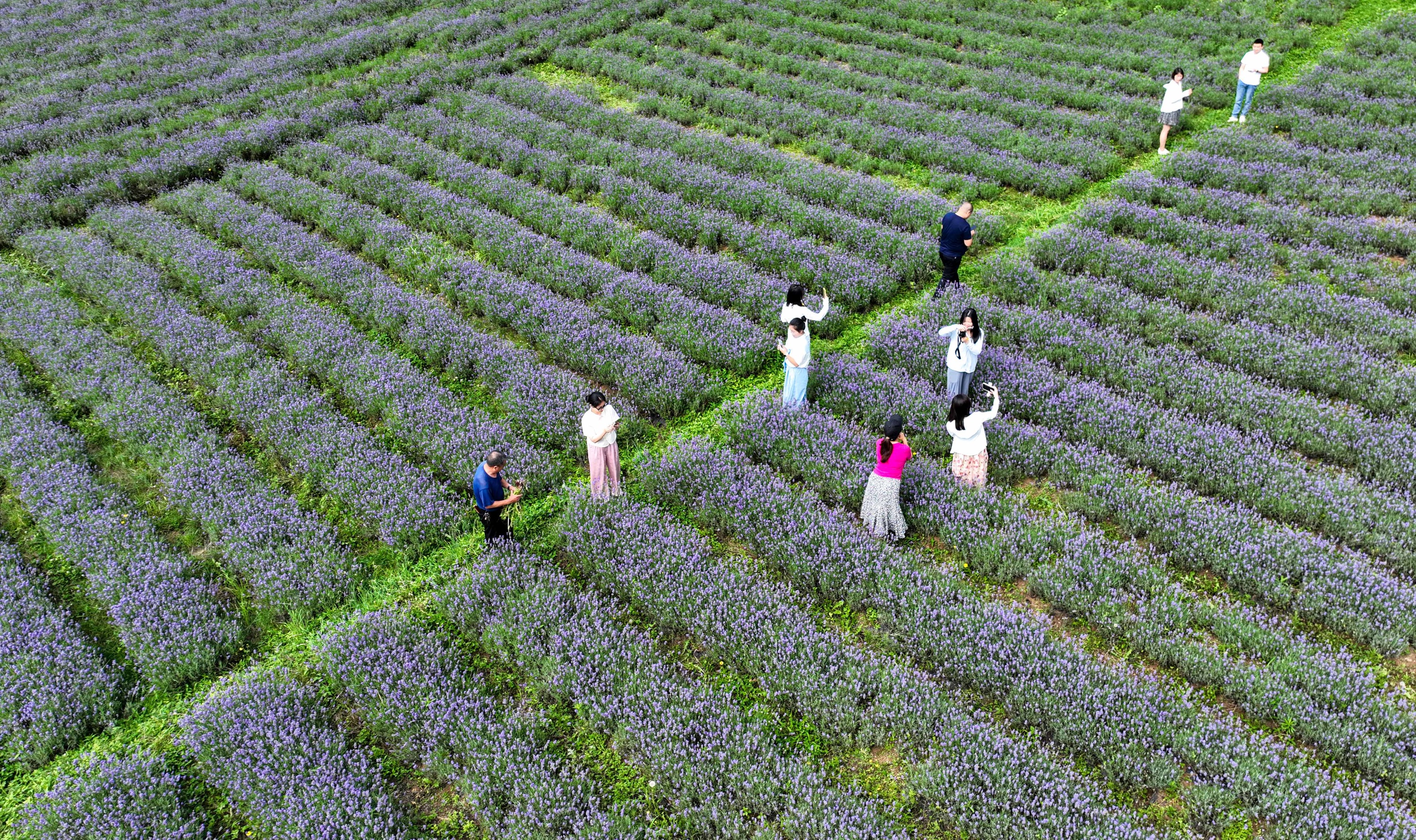 入伏以来,贵州省毕节市赫章县兴发乡中寨村400余亩薰衣草进入盛花期,吸引各地游客前往休闲避暑,赏花观景。兴发乡中寨村是贵州省乡村旅游重点村,近年来,中寨村利用清凉气候和毗邻韭菜坪景区的优势,大力发展花卉产业,推动农业和旅游业深度融合发展,助力乡村全面振兴。