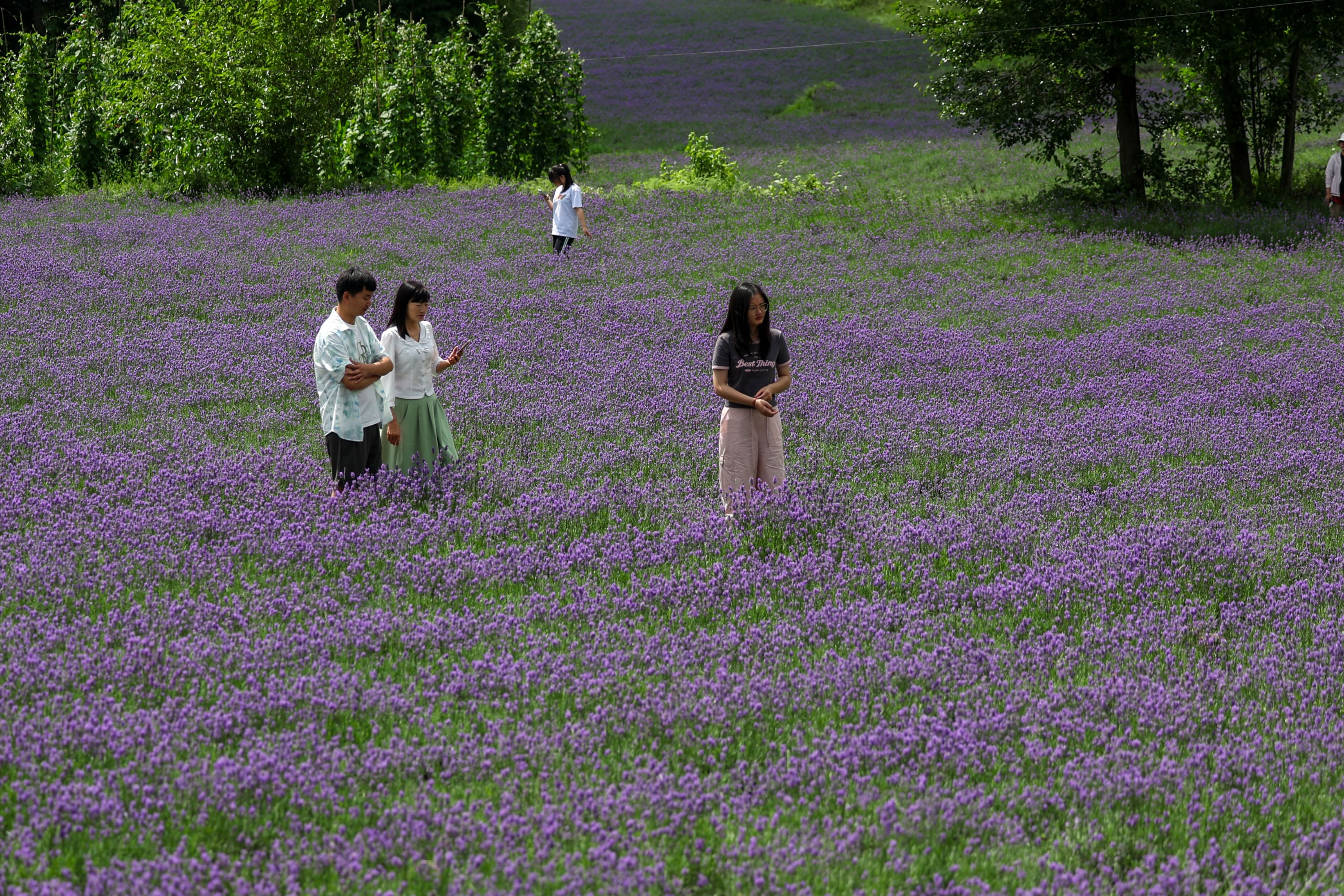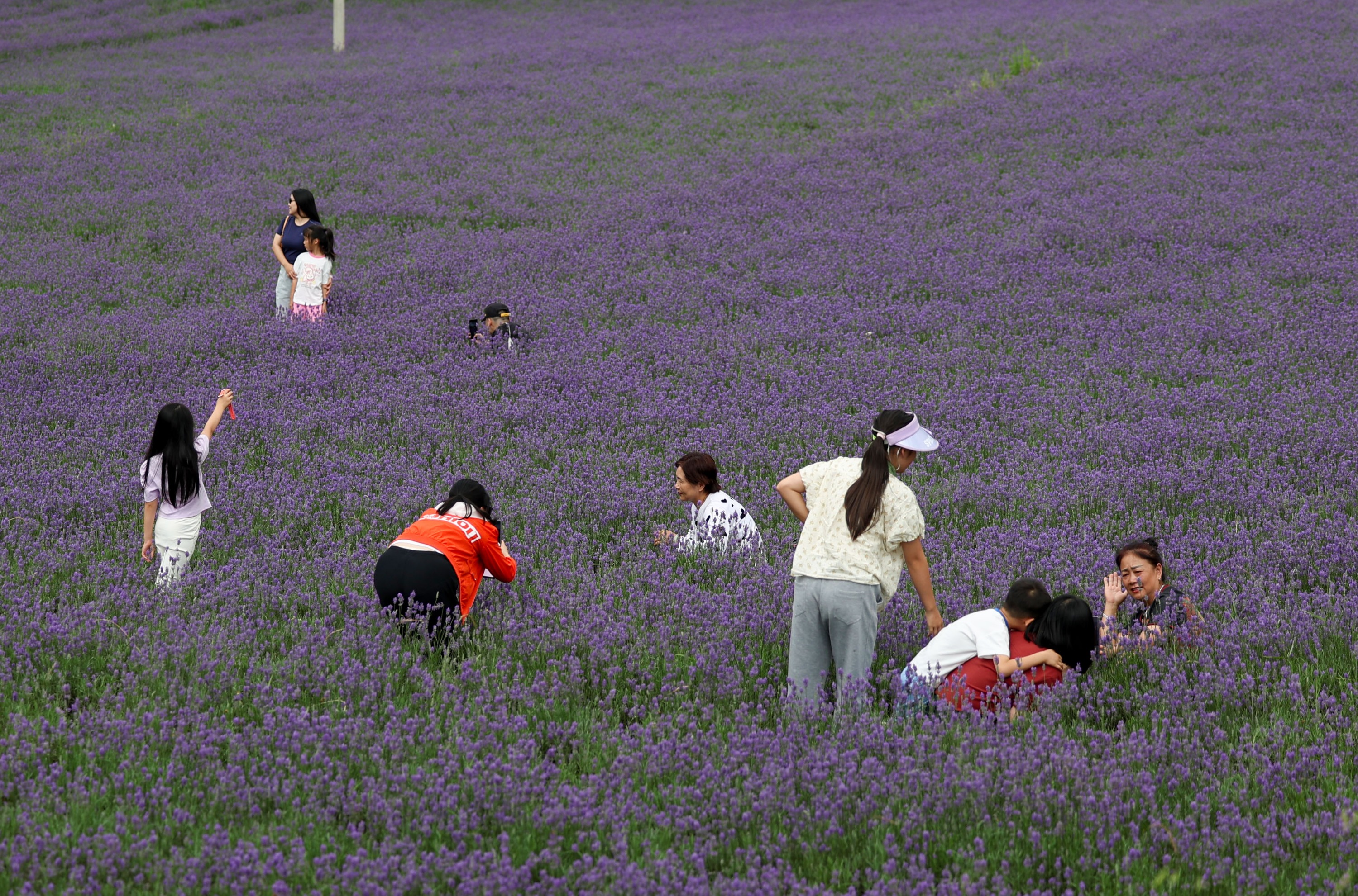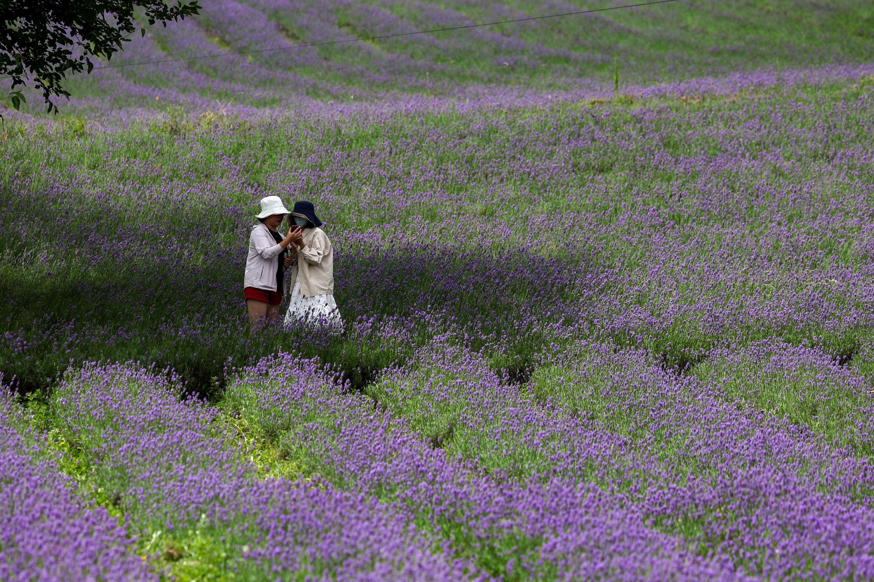 7月21日,游客在毕节市赫章县兴发乡中寨村薰衣草种植基地里赏花