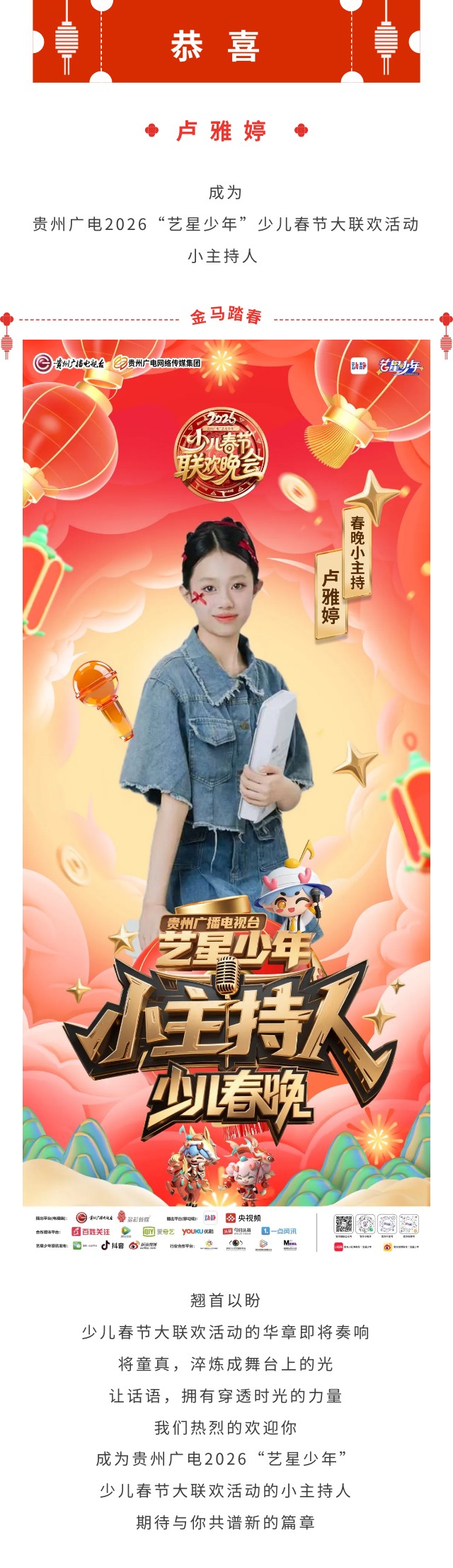 卢雅婷 | 贵州广电2026“艺星少年”少儿春节大联欢活动小主持人!