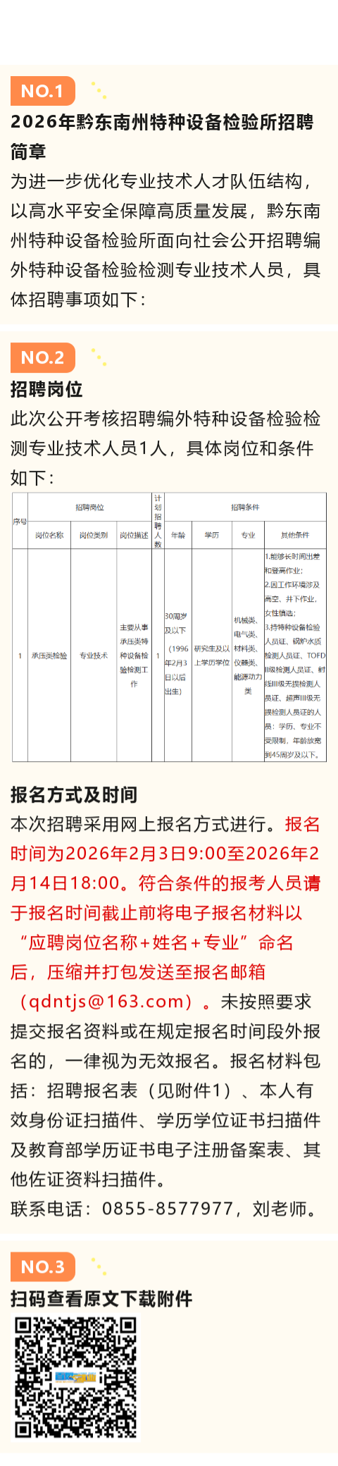 【事业单位】黔东南州特种设备检验所招聘!报名截止时间:2月14日!