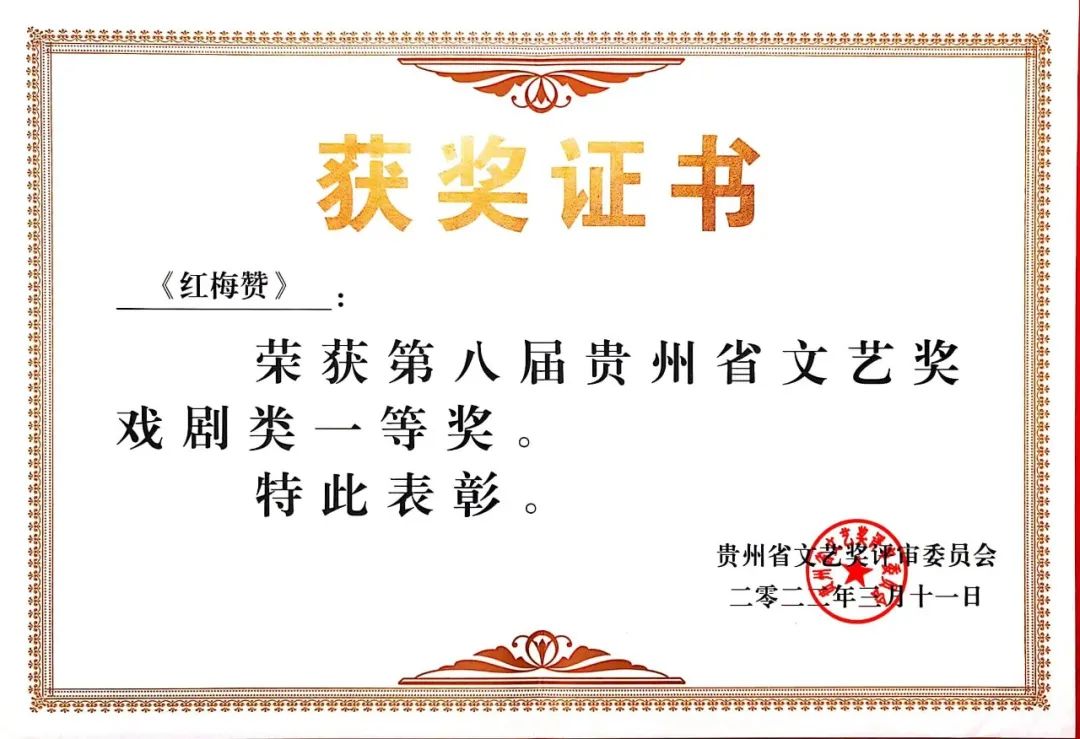 由贵州省花灯剧院出品的戏剧作品《红梅赞》,在第八届贵州省文艺奖评选中获得了戏剧类一等奖。