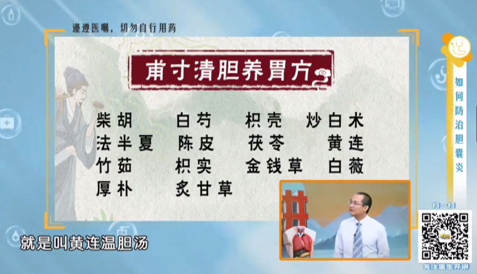 处方中使用了黄连温胆汤、四逆散。“甫寸清胆养胃方”是治疗各种胆囊疾病的首选基本处方。