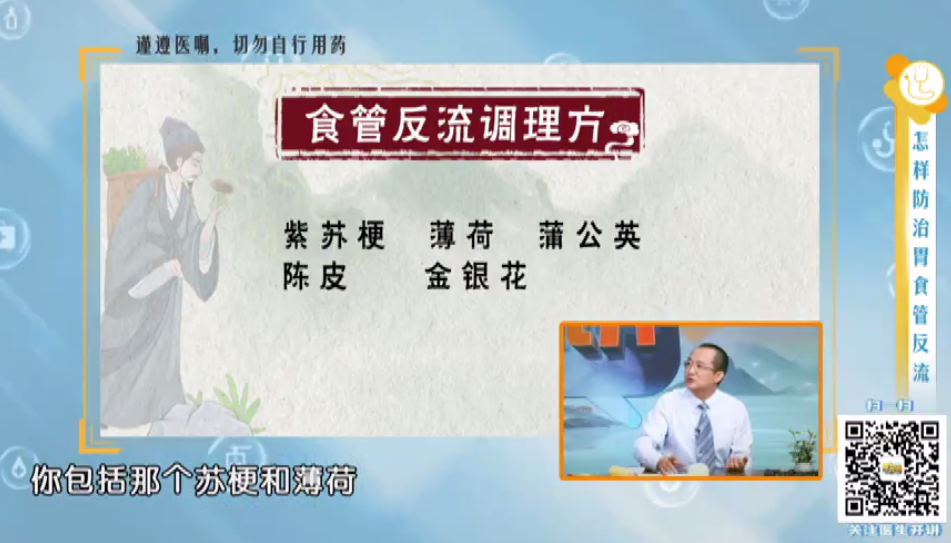 紫苏梗10g、薄荷6g、蒲公英15g、陈皮10g、金银花10g。