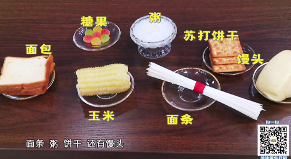 白粥、馒头、苏打饼干、面包、面条、水、粗粮(玉米、红薯随意)均可;