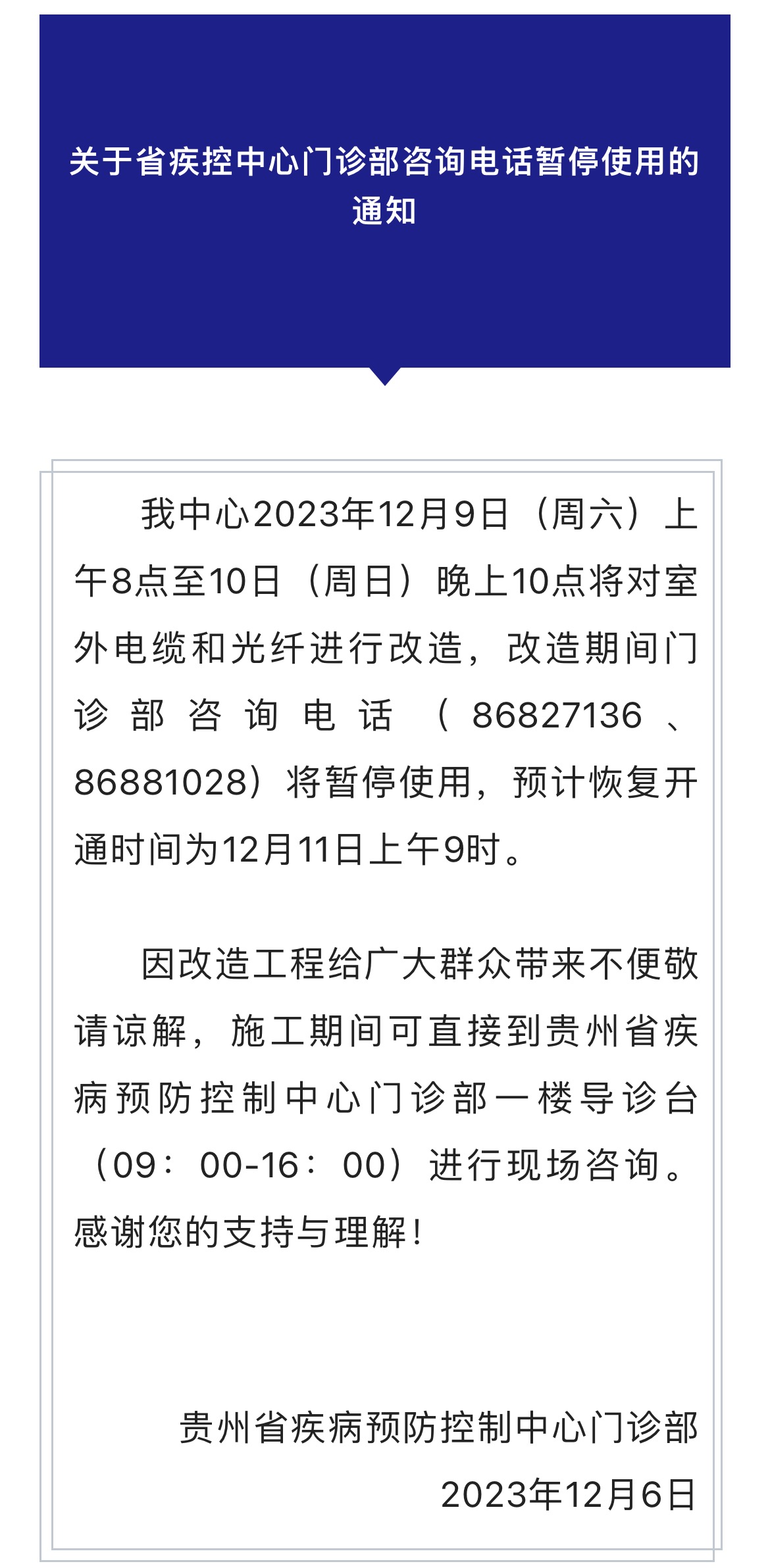 动静健康 | 关于省疾控中心门诊部咨询电话暂停使用的通知