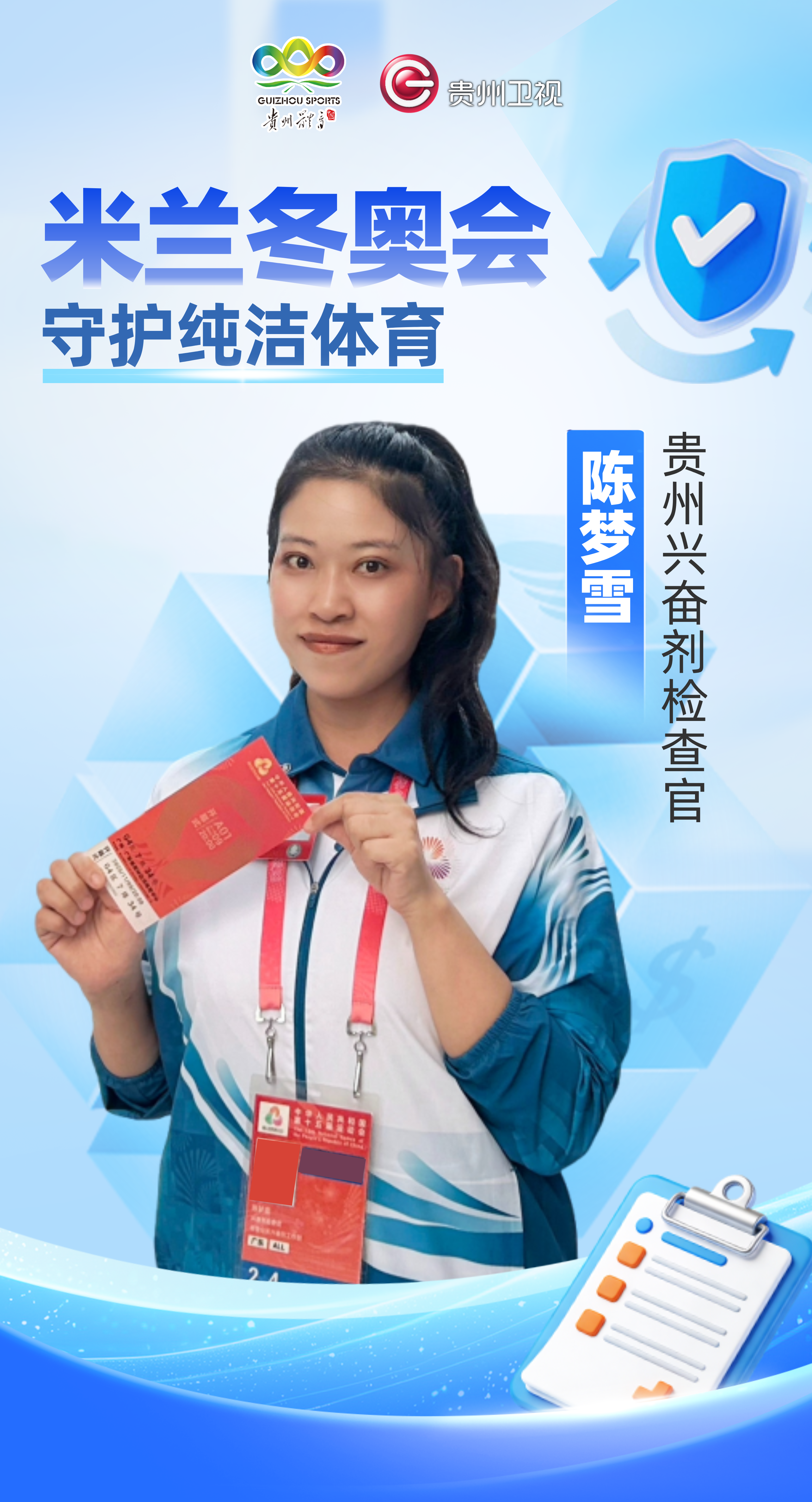 作为贵州首位出境参与国际赛事兴奋剂检查工作的检查官,陈梦雪以过硬的专业素养和丰富的从业经历获得米兰冬奥邀约。面对这份沉甸甸的责任和光荣的使命,她内心充满期待的同时,更感谢中国反兴奋剂中心的大力推荐和培养。