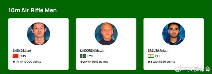 国际射联更新世界排名,盛李豪在10米气步枪项目上以10000积分,领先第二名瑞典选手维克多(5663分)近一半积分,断崖世界第一!“干饭哥”成为历史上首位在12个射击单人项目中积分破万的运动员。