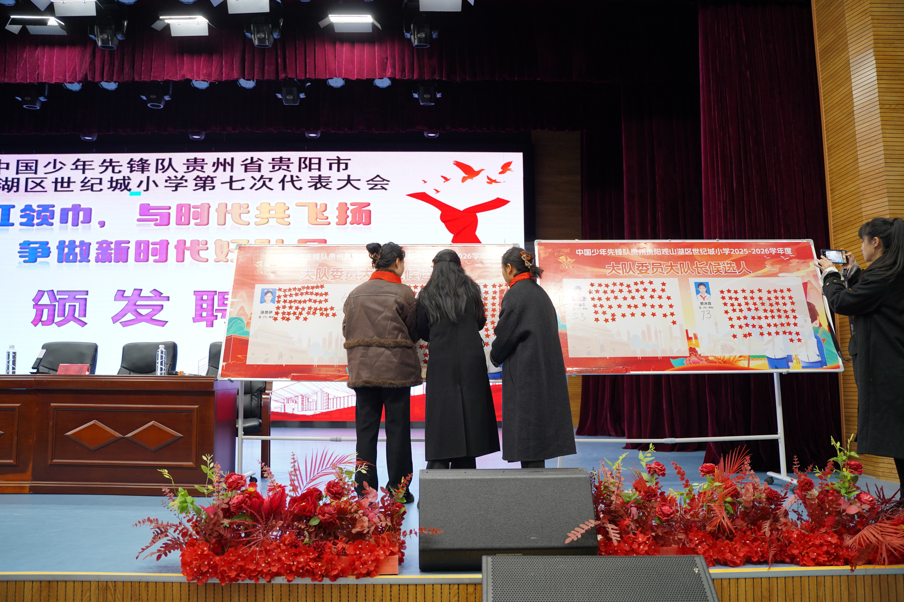 2025年12月25日上午9时,中国少年先锋队贵州省贵阳市观山湖区世纪城小学第七次代表大会,在学校多功能厅隆重召开。本次大会以“红领巾,与时代共飞扬,争做新时代好队员”为主题,汇聚了学校党政领导、全校少先队员代表、辅导员代表及家委会代表,共计四百余人,共同见证这一庄严时刻。大会历经规范有序的开幕式、精彩纷呈的第一次全体会议与意义深远的闭幕式,圆满完成各项议程,为学校少先队事业的蓬勃发展续写了崭新篇章。