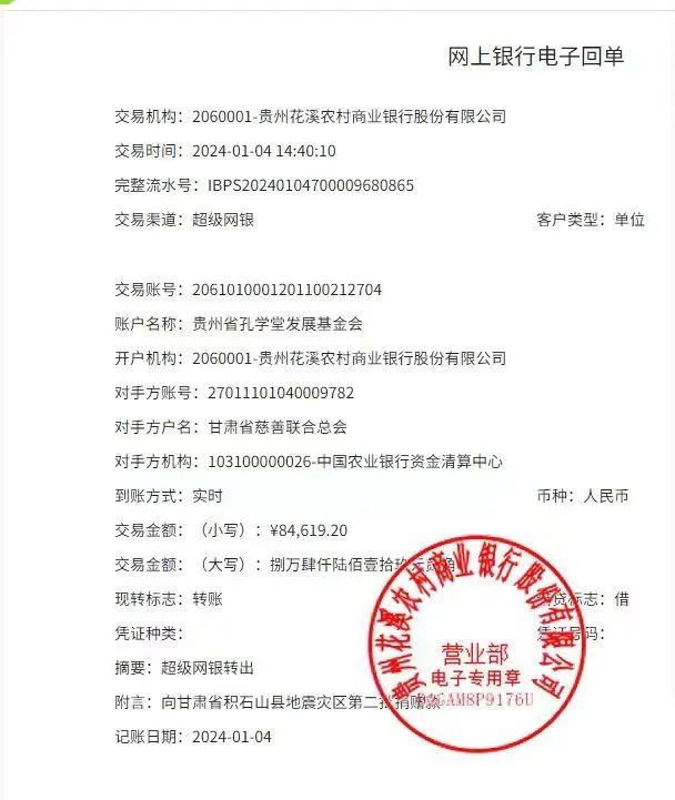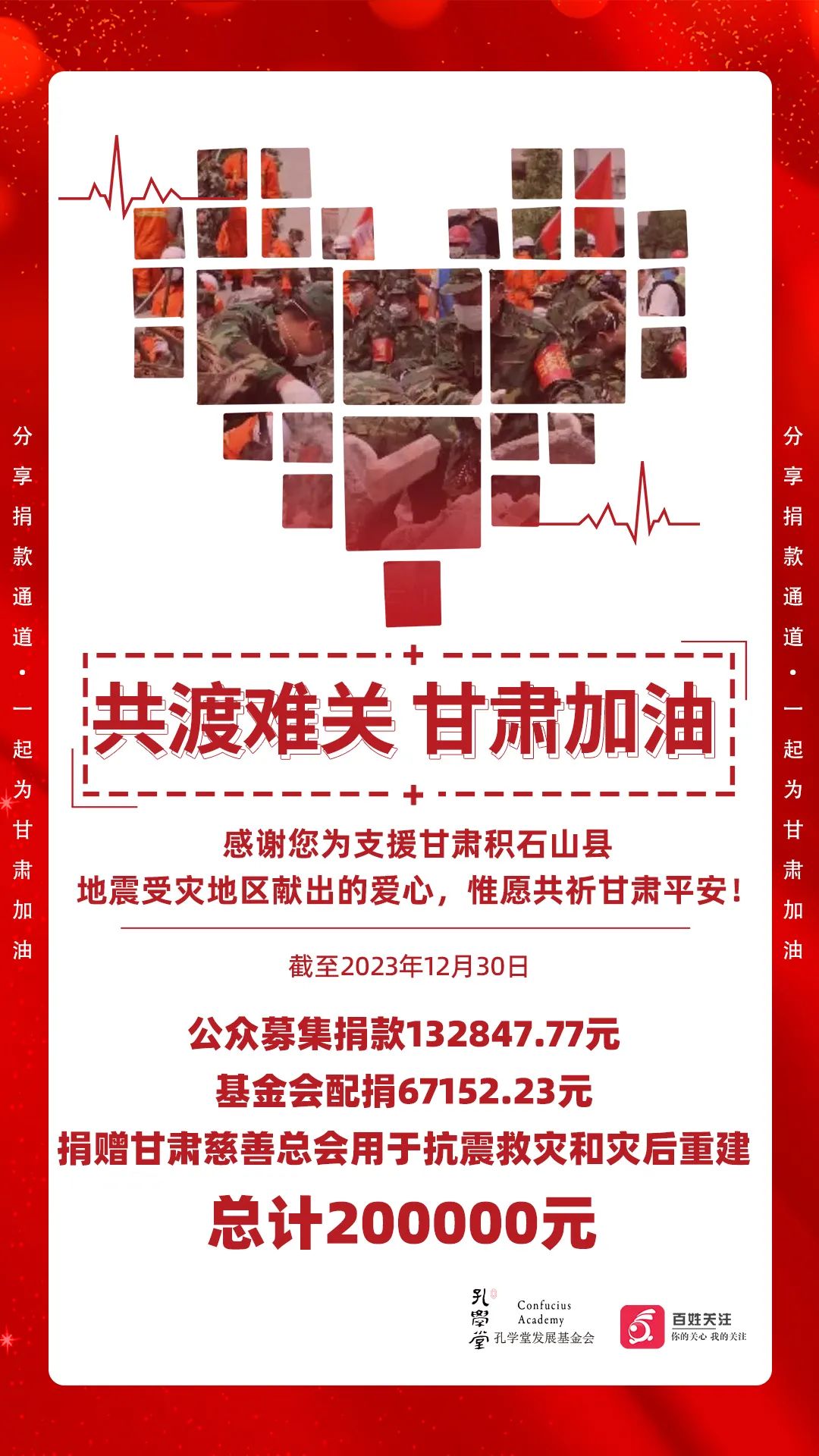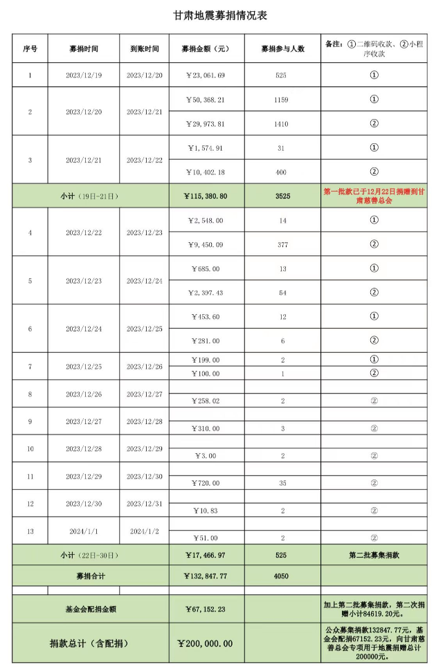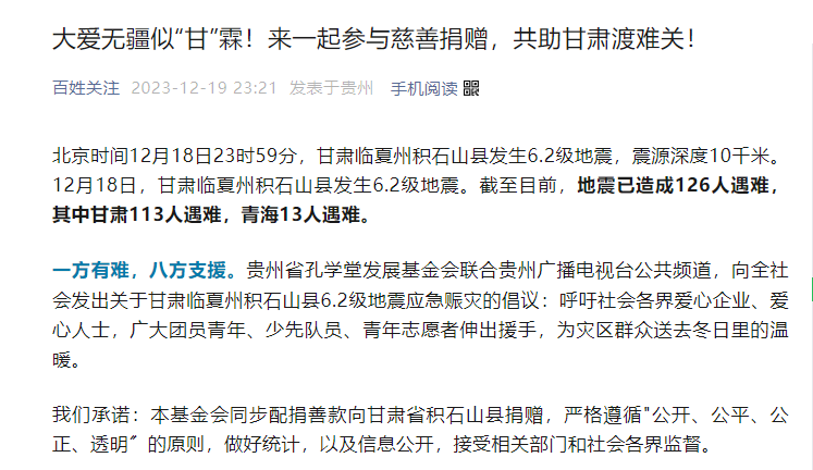 捐款20万元!已汇至甘肃省慈善联合总会,共助积石山重建家园