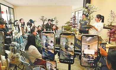 作为花木主产区,江苏省沭阳县通过搭建开放式矩阵直播间,集中供给场地、产品、技术等资源,吸引了超5万名从业者,推动花卉产业更好更快发展。图片均为本报记者雷声摄