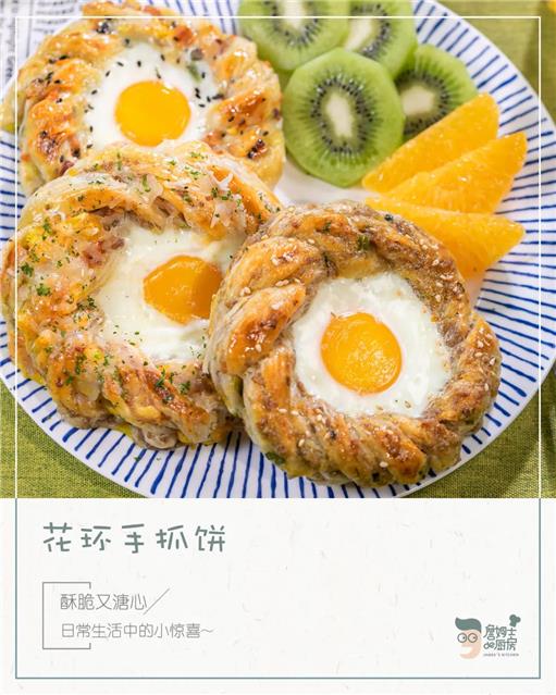手抓饼变化多端,随随便便捣鼓一下,一张几毛钱的手抓饼就能做成吃不起的样子!比如这样:花环手抓饼!