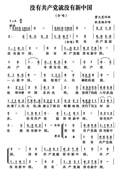 《没有共产党就没有新中国》这首歌曲无论出现在什么场合,当有人唱出第一句歌词时,瞬间就可以引发全场大合唱。这首脍炙人口的歌曲唤起了人们对峥嵘岁月的深情回忆,激发了后辈对革命先烈的真挚缅怀。中国共产党领导中国人民披荆斩棘、艰苦奋斗,使具有70年历史的新中国建设取得了举世瞩目的成就,中国这个世界上最大的发展中国家在短短数十年里跃升为世界第二大经济体,创造了人类社会发展史上惊天动地的发展奇迹,使中华民族焕发出新的蓬勃生机。