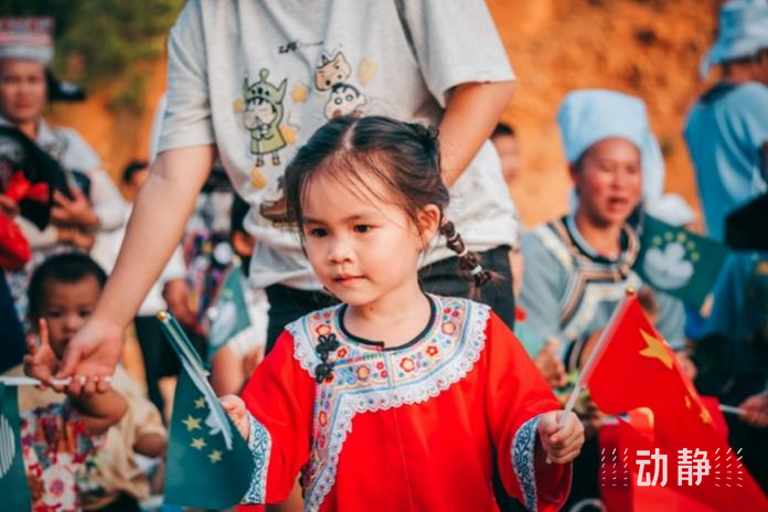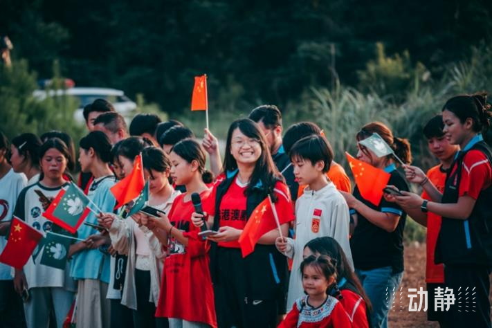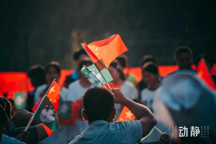 晚会中,湾区青年还与村民手持国旗、澳门区旗,唱响《七子之歌》及《我和我的祖国》,以歌声喜迎双庆,祝愿澳门明天更美好,共同祝福祖国繁荣昌盛。