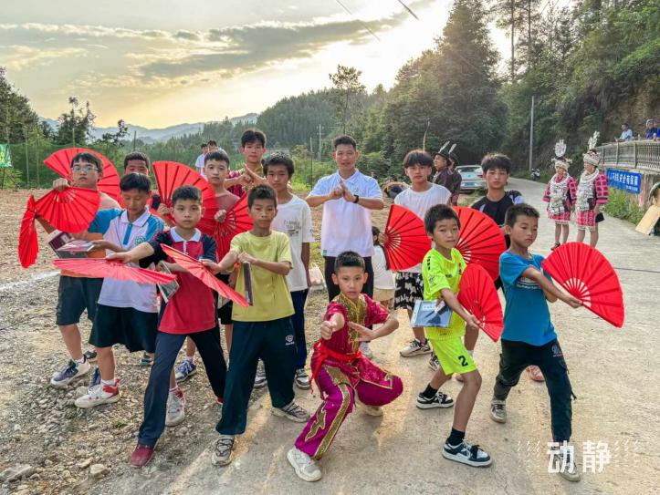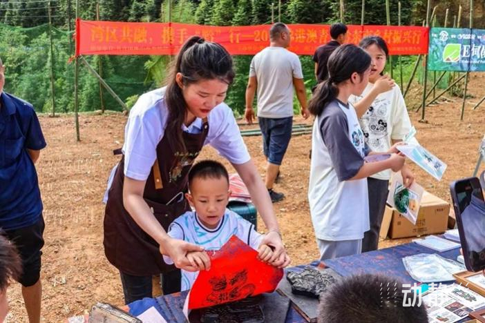 在田懂村,湾区青年还举办了一场主题为“我们的村晚”的文艺展示晚会,以青山晚霞为背景,为观众呈现了一场汇聚粤港澳黔四地文化精髓的盛宴。晚会中,佛山蔡李佛拳的市级非遗传承人李伟峰,以及佛山木版年画的市级代表性传承人刘钟萍,手把手地教授村民们蔡李佛拳和木板年画技艺,不仅丰富了村民们的文化生活,也让大家更加深入地了解了佛山,增进了对佛山文化的认识和了解。