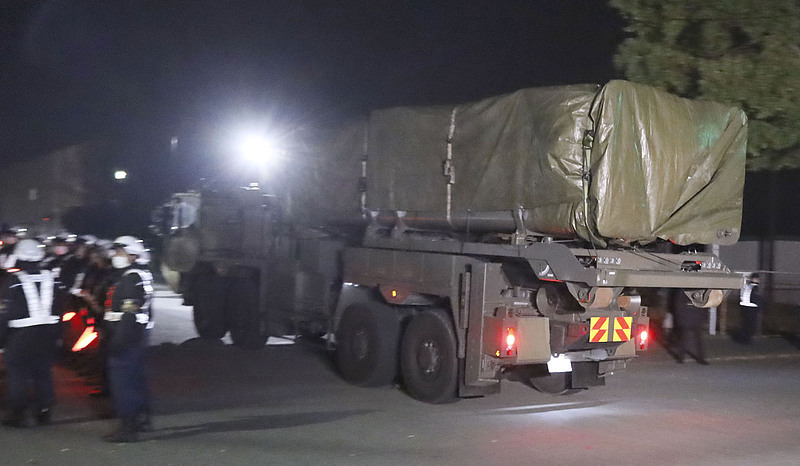 △当地时间3月9日,一辆搭载远程导弹发射器的日本陆上自卫队车辆抵达健军驻屯地。
