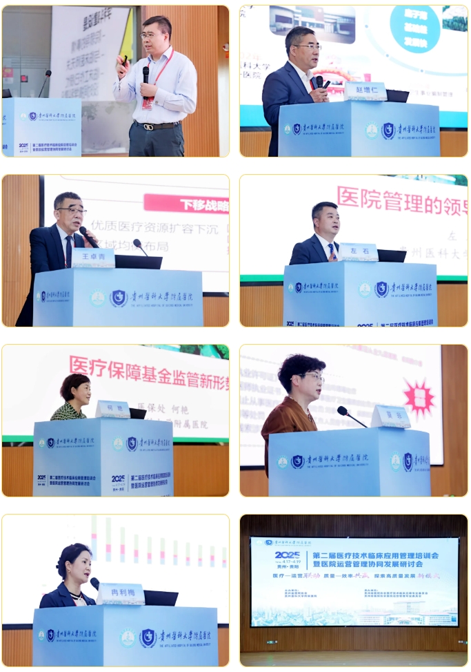 在学术交流中,中山大学附属第一医院纪委书记何韵、河北医科大学第一医院党委书记赵增仁、中山大学附属第一医院科研与学科建设处处长王卓青,贵州医科大学附属医院院长左石、医保处处长何艳、医务处处长莫非、发展规划处副处长冉利梅等省内外管理专家,分别围绕“以学科建设为导向、创新专科运行机制”“以‘泛质量 大运营’为核心推动精致医院内涵建设”“学科建设和学科运营管理”“医院管理的领导力与执行力”“依法执业视角下的医疗技术临床应用管理思考”“医疗保障领域法律法规——医保基金监管新形势”“运营管理助推高质量发展的贵医实践”等主题开展专题讲座。各位讲者通过理论分析和经典案例,分享了在医疗技术临床应用管理、医院运行管理、学科建设和医保管理等方面的经验做法,为与会者带来了新思路。