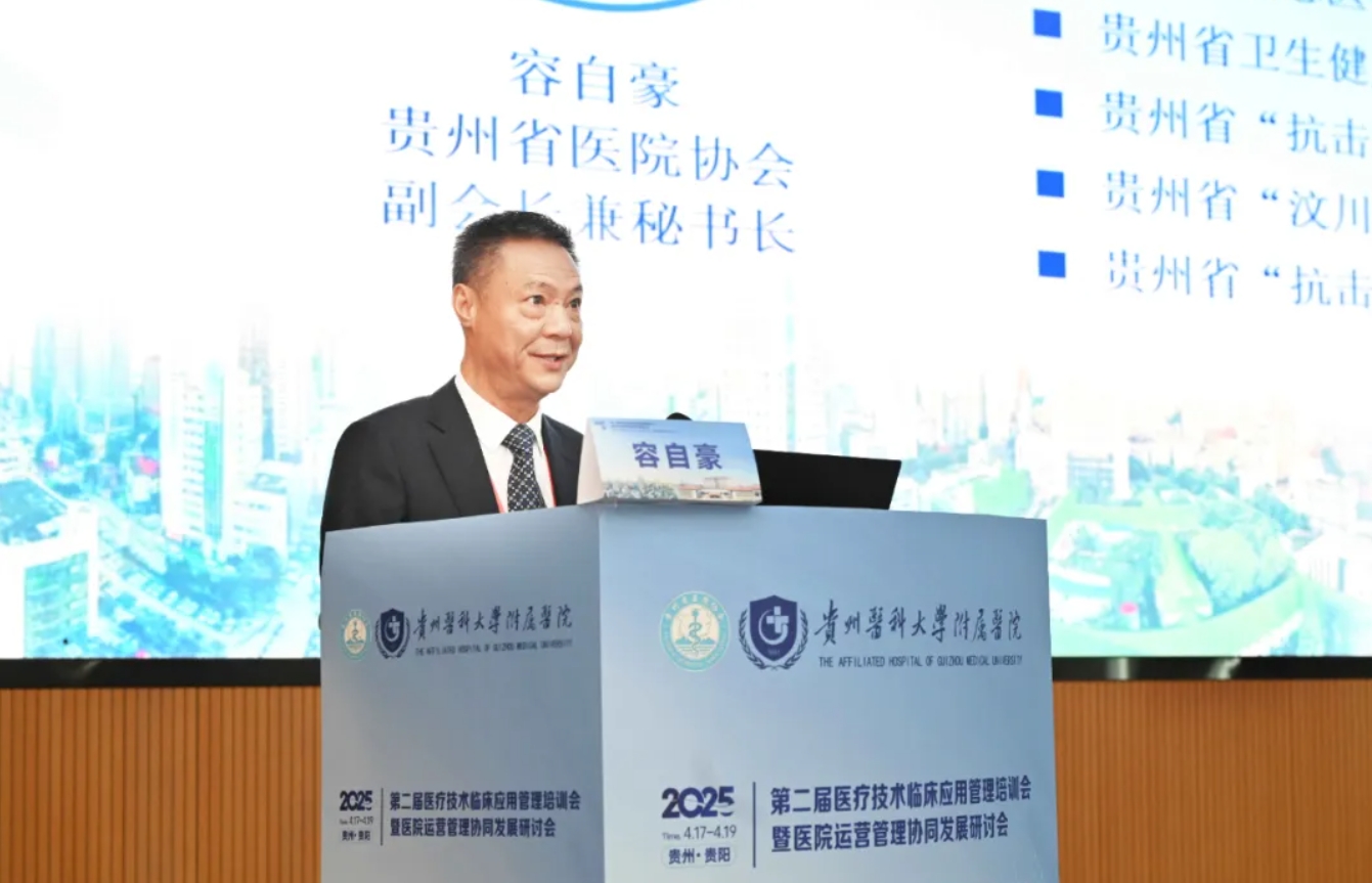 贵州省医院协会副会长兼秘书长容自豪在致辞时表示,在健康中国战略推进过程中,医疗技术创新应用和医院运营管理的优化升级已成为推动医疗卫生事业高质量发展的核心要素。本次会议围绕医疗与运营、质量与效率开展深入研讨,探索高质量发展新模式,为省内医疗行业发展提供新思路。