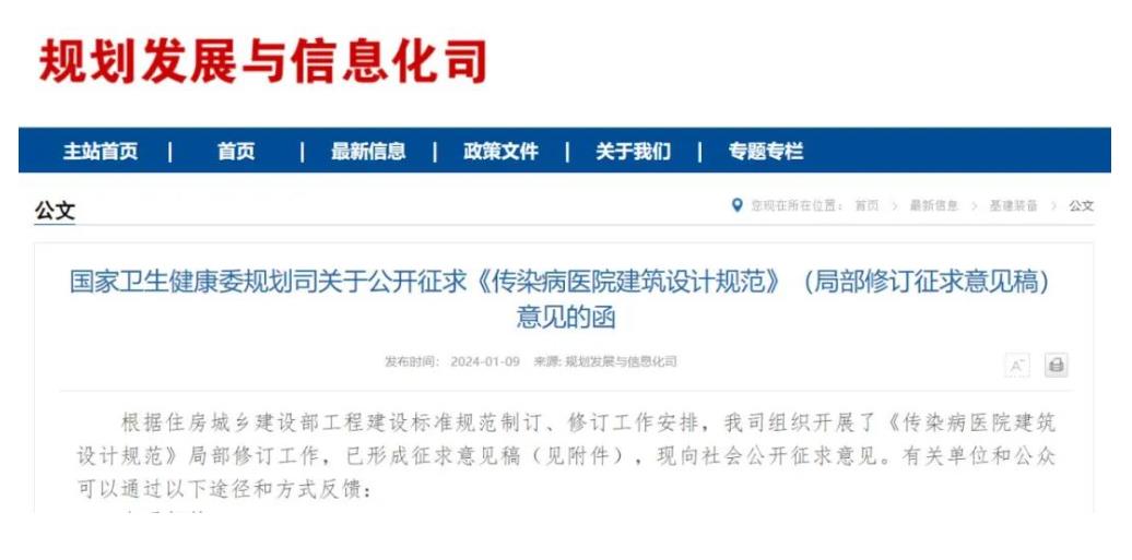 动静健康 | 公开征求意见!事关传染病医院建筑设计规范
