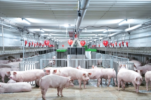肉猪分栏群喂系统可以实现肉猪智能分区、精准出栏预估、异常标记。资料图