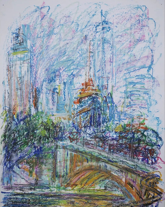 🔼 朝阳桥 59X44.2㎝ 纸本油画棒 2020年