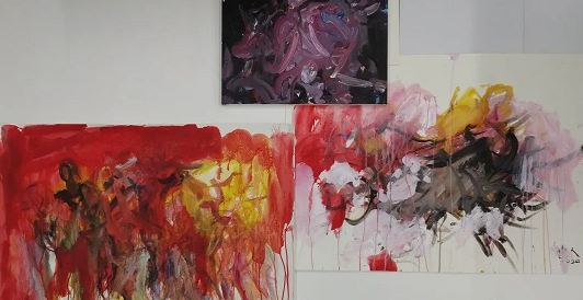 这些画布似乎印证着“剧场”的意象,其中表演者就是那些在空白画幅之中呈现出笔迹与涂抹行为的笔迹学显形,我称之为是一种消隐与显形的视觉剧场,也就是通过线与色块渲染所隐藏起来又显示出来的肉身的戏剧演绎。