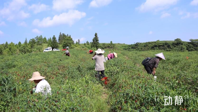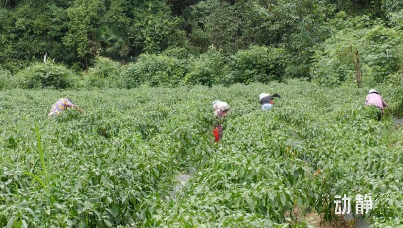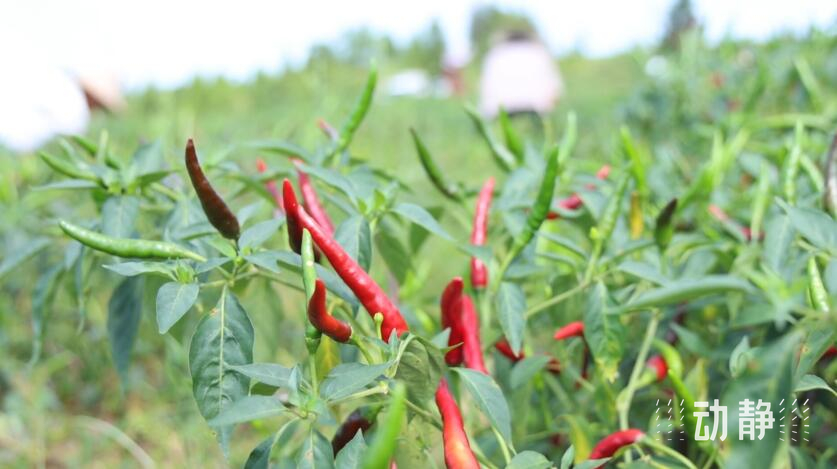 碧江区坝黄镇长坪村今年第一年发展的200余亩朝天辣椒迎来丰收。基地里,一垄垄辣椒植株郁郁葱葱、长势旺盛,椒农们忙采收成熟的辣椒。今年朝天辣椒长势好、产量高、价格优,将以每公斤6元左右的价格直接销往遵义。