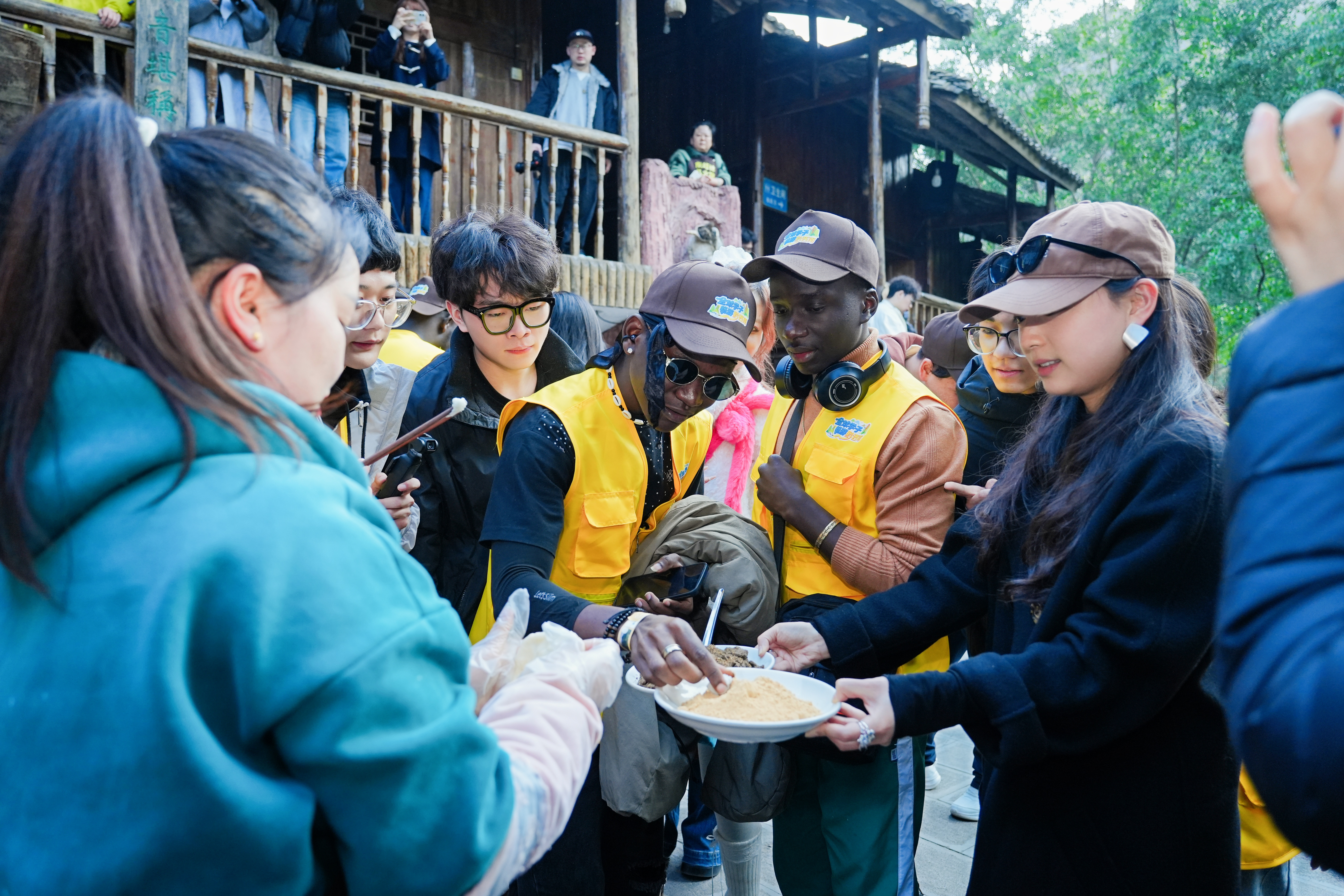 随后,学子们乘车前往此行的首个核心景区——万峰林。在景区内的农家乐,一顿地道的布依族风味午餐为大家接风洗尘。酸爽开胃的布依特色酸汤鱼与声名在外的网红万峰林蛋炒饭,不仅满足了味蕾,更让学子们从美食中初步领略了当地风土人情。