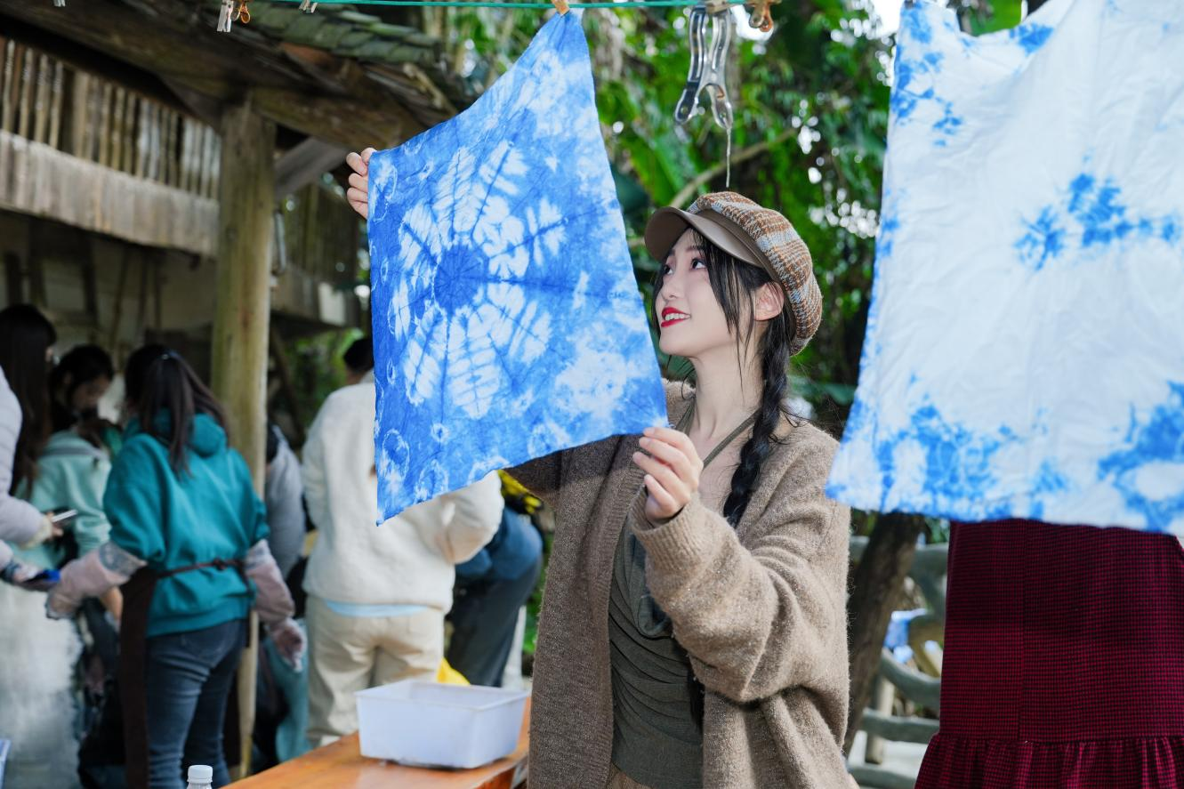 随后,一场生动的布依族扎染手作体验让大家从观察者变为参与者。在非物质文化遗产代表性传承人的指导下,学子们学习了传统纹样绘制,在一方蓝白之间,感受布依族传统技艺的独特魅力与智慧。