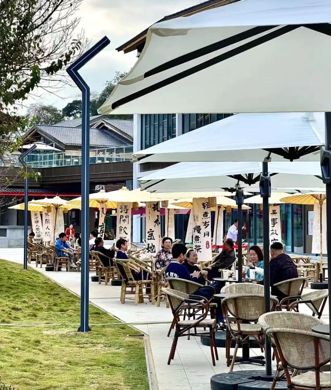 漫步在阿云朵仓,身旁是先锋艺术装置,脚下的青石板路连接着非遗主题空间。这种“自然+人文+潮流”的场景营造,让这里既成为年轻人拍照打卡的网红地,也成为市民静心休憩的公共空间。