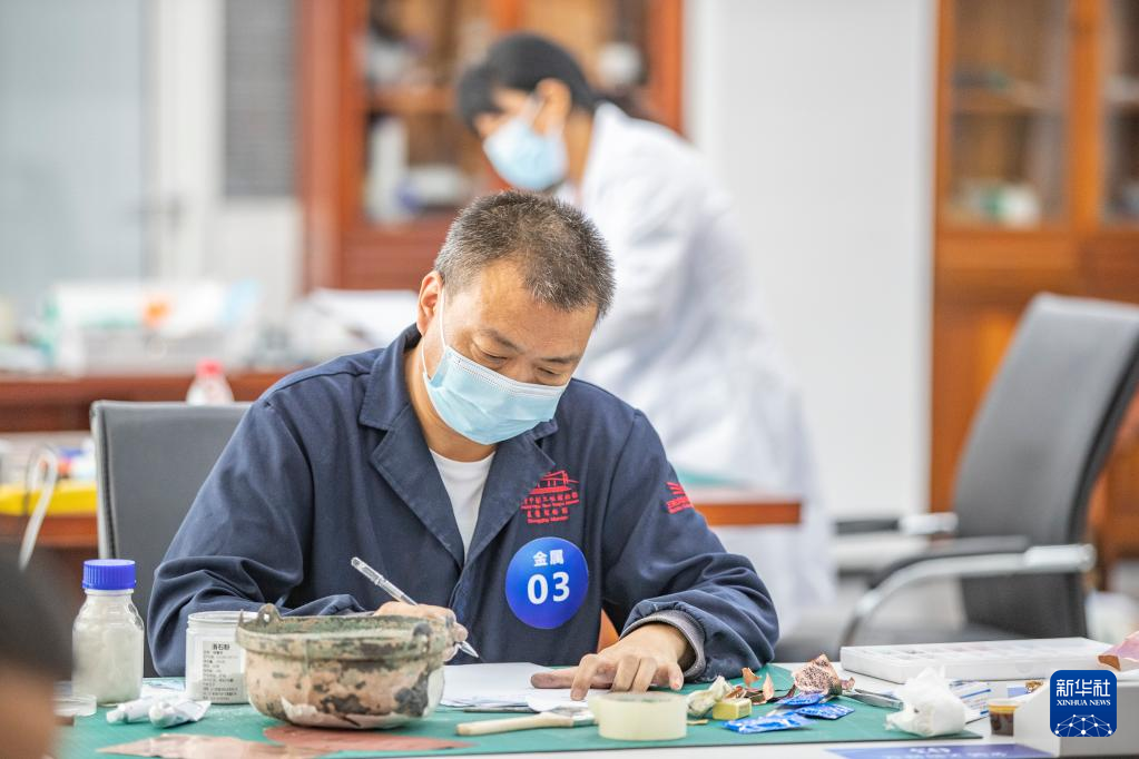 9月9日,参赛人员在进行陶瓷文物修复技能比赛。