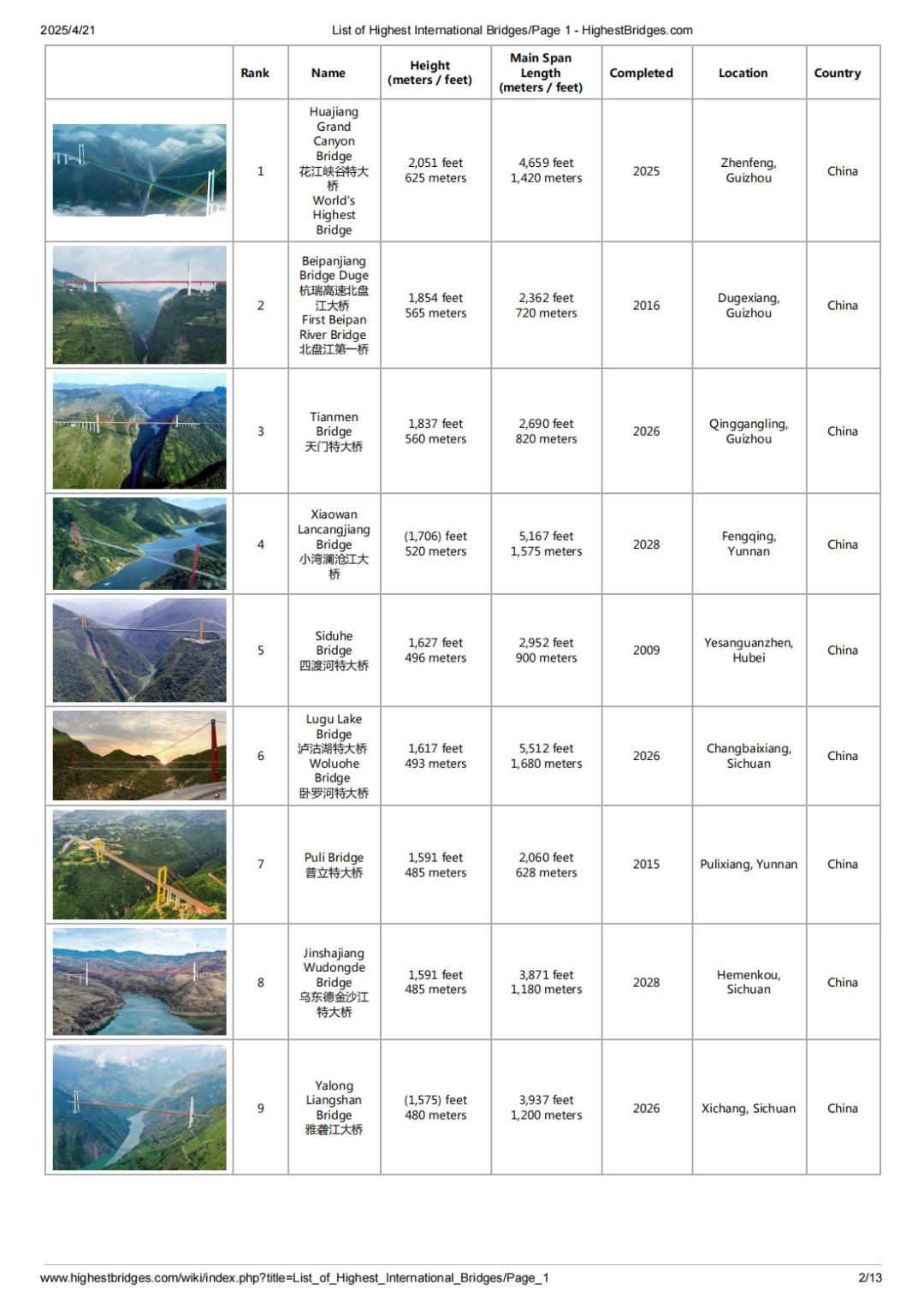 贵州狂揽前三甲!世界百大高桥榜单贵州占据近“半壁江山”