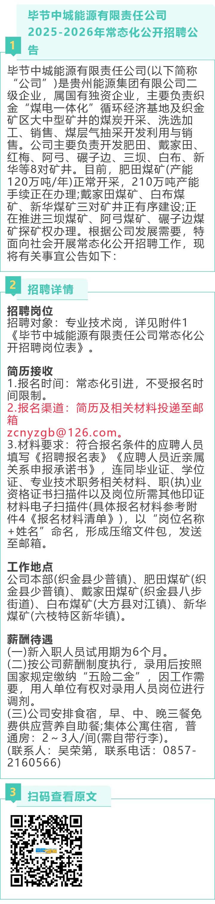 【国企】毕节中城能源有限责任公司招聘!五险二金、提供食宿!