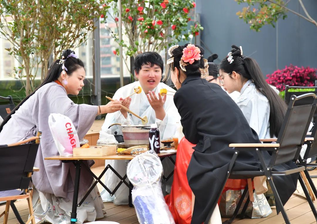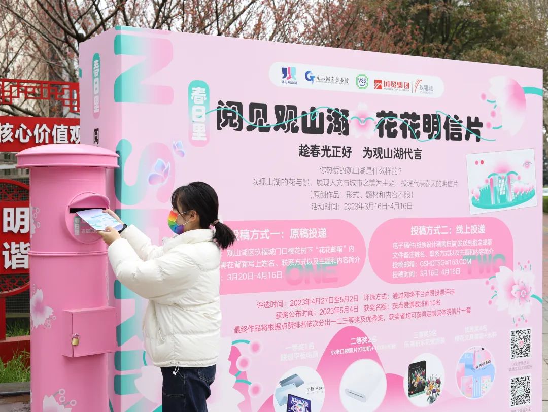 当天,玖福城生活购物中心也准备了一系列丰富多彩的活动,在“花开有声 乐动金阳”春日音乐会上,歌声和旋律的加持让现场的氛围被点燃。广场上的后备箱集市则为大家准备了可玩可逛可淘可品尝的小商品和美食,当音乐与集市相遇,便是文化与烟火的碰撞,让人沉浸其中,尽享生活的精致和美好。玖福城6楼的友达花园的国风茶话会,汉服爱好者们身着华裳品国风古韵,生一炉火,煮一壶茶,葳蕤生香。此外,活动还发布了今年的“观山湖礼物”春之樱,市民朋友们积极参与阅见观山湖·花花明信片征集活动,将自己设计的明信片投入邮筒中。
