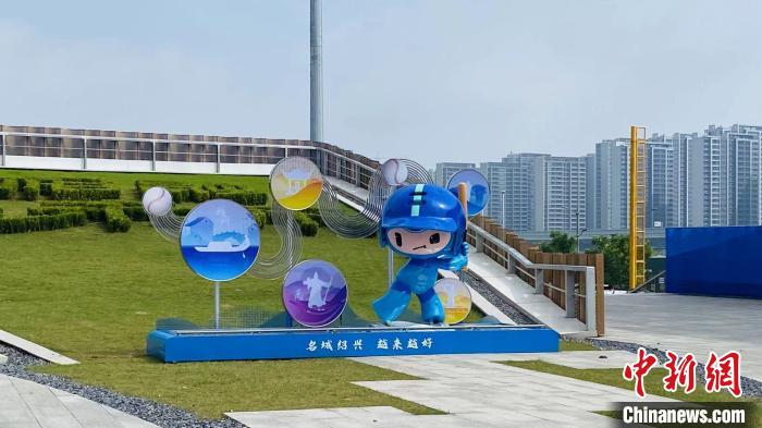 亚运棒垒球场馆中的吉祥物。钱晨菲 摄