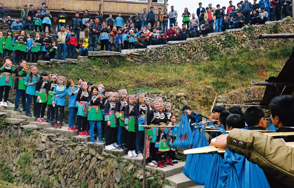 这一习俗在当地已延续了700多年。每年重阳节,媒人统一到侗寨说媒提亲,如果婚事说成,来年正月初六,村寨中女方统一出嫁。这一独特的婚恋习俗已成为当地重要的文化景观。