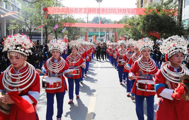 三都水族自治县普安镇重阳村苗族群众通过祭祀、斗牛、跳芦笙舞、民歌对唱等活动庆祝重阳,这一传统已延续五百多年。天柱县万民欢聚石洞镇云雾山,人们扛犁耙、穿蓑衣展示农耕,以独特方式过节。