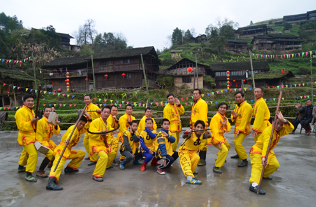 贵州重阳节还有丰富多彩的民间技艺展示。在天柱县渡马镇共和村甘溪侗寨的习武坪内,随着一声声“嘿”“嚯”的响亮呐喊声,“六家拳”“洪门棍”“月牙镗”、长锏、铁尺等轮番上演。