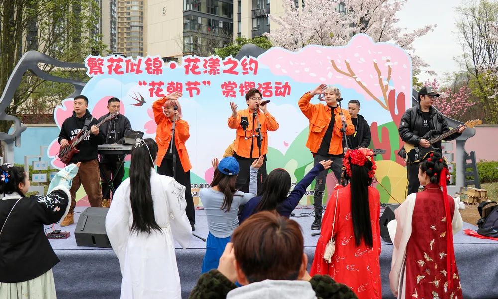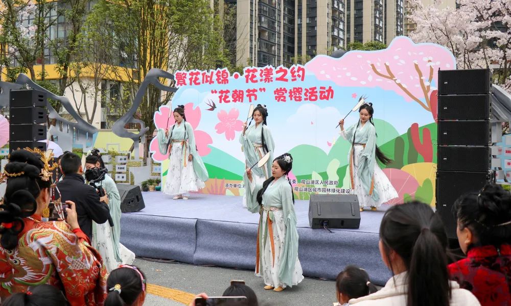 3月25日,观山湖区诚信南路一派热闹景象,上演了一场主题为“繁花似锦 花漾之约”的“花朝节”赏樱活动,市民朋友们在活动中欣赏樱花美景,感受明媚春光。