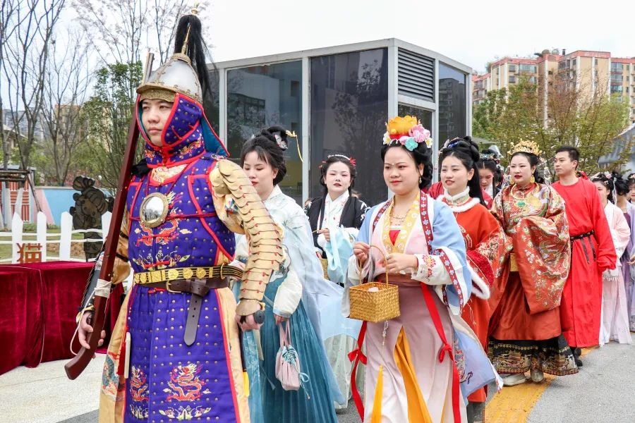 此外,活动过程中还穿插了汉服巡游、永生花制作等环节,并设置了围炉煮茶、花朝节市集、后备箱市集体验活动,吸引众多行人和游客驻足围观、拍照留念,为大家带来了一场丰富多彩的文化盛宴。