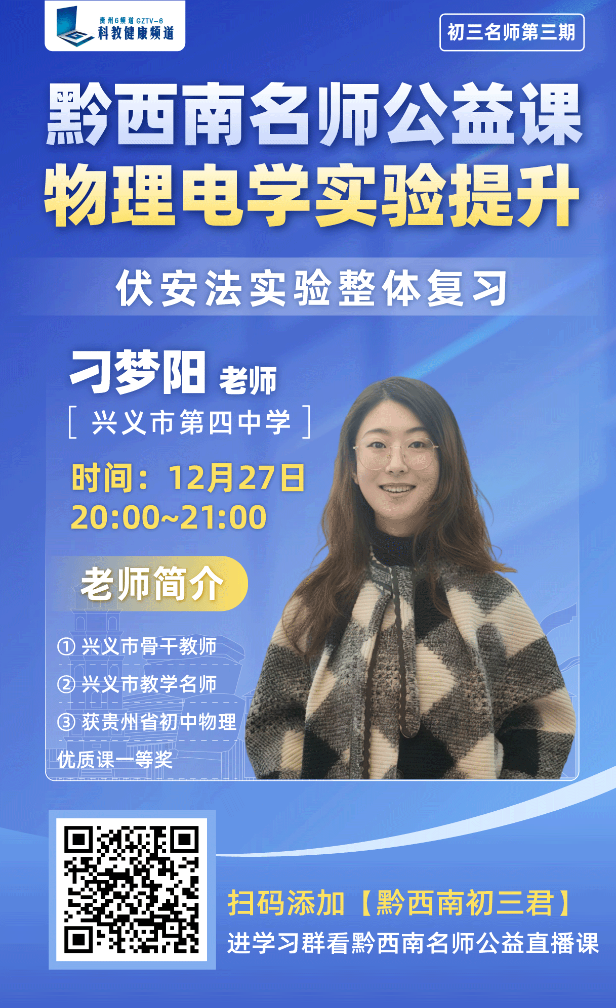 为深入贯彻落实教育惠民政策,切实解决初三学子备考中的实际困惑,由贵州广播电视台教育事业部与黔西南州教育局联合主办、黔西南州各初级中学深度参与的《黔西南名师公益直播课堂》将于12月27日播出第三期!这是一档专为初三学子打造的全免费、高含金量的升学助力直播,旨在通过权威指导与实用方法,为孩子们的中考冲刺注入强劲动力。