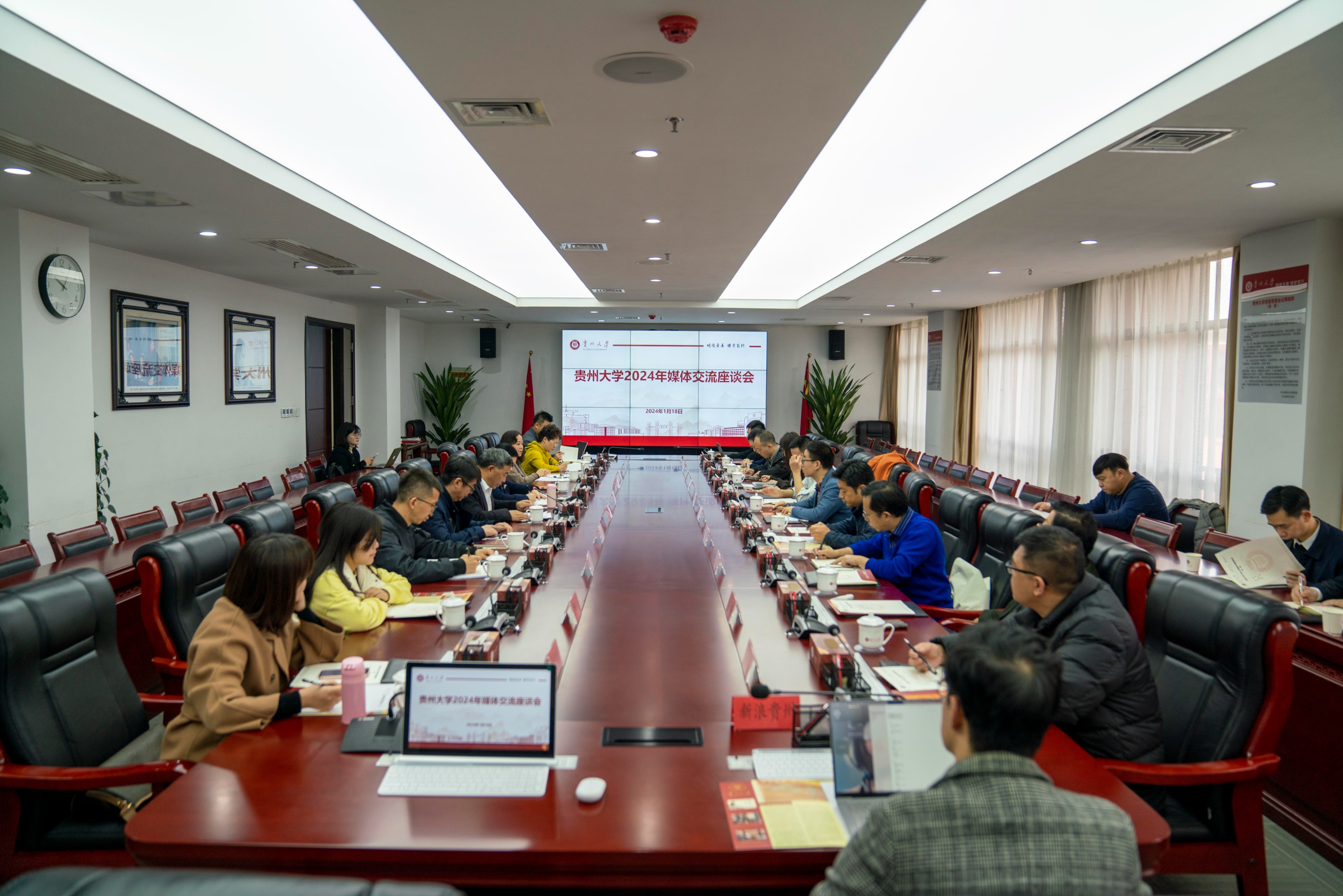 1月18日,贵州大学2024年媒体交流座谈会召开,就助力贵州大学的“双一流”建设和高质量发展进行交流研讨。贵州大学校党委书记杨未、校长宋宝安院士出席会议,校党委副书记骆长江主持会议。