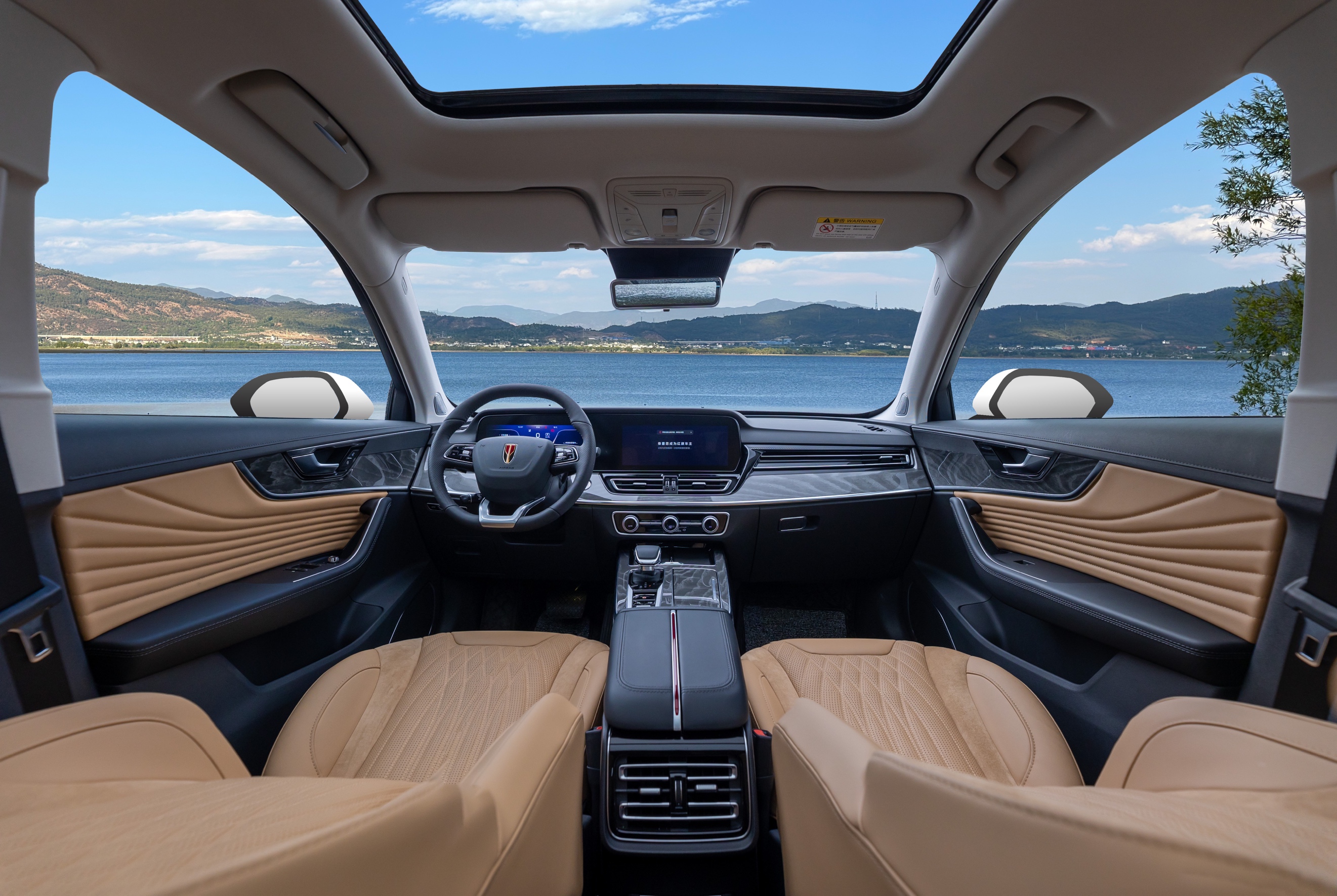 新红旗HS5整车长4785mm,轴距2870mm,后排头部空间983mm,腿部空间950mm,舱内空间全面领先同级。座椅采用真皮配合高密度打孔技术,温柔舒适,坐垫长度达530mm,提供完美腿部支撑。配置双12.3英寸贯通屏、8.3英寸W-HUD,驾驶信息尽收眼底,大大提升驾驶安全性。此外,超广角、超清晰的9英寸极窄边框流媒体内后视镜,可让倒车、泊车更便利。