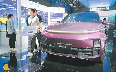 日前,在北京举行的中关村论坛展览(科博会)上,新能源汽车及相关产品成为人们关注的焦点。图为会上展出的新能源汽车。新华社记者 任 超摄
