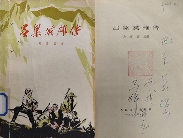 马烽、西戎签赠巴金的《吕梁英雄传》,中国现代文学馆藏。作者供图