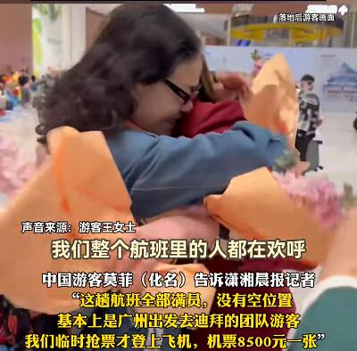 中国游客莫菲(化名)告诉记者:“这趟航班全部满员,没有空位置,基本上是广州出发去迪拜的团队游客,我们临时抢票才登上这班飞机。机票8500元一张。”莫菲回忆,能顺利回国,还是朋友凌晨把她叫醒抢票:“神仙朋友,关键时刻救命般的存在。”