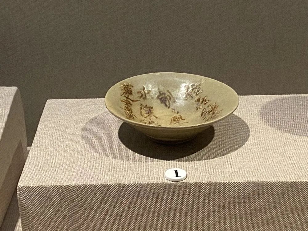 首次面向公众展出、题有这首五言唐诗的长沙窑青釉瓷碗。新华社记者 明星 摄