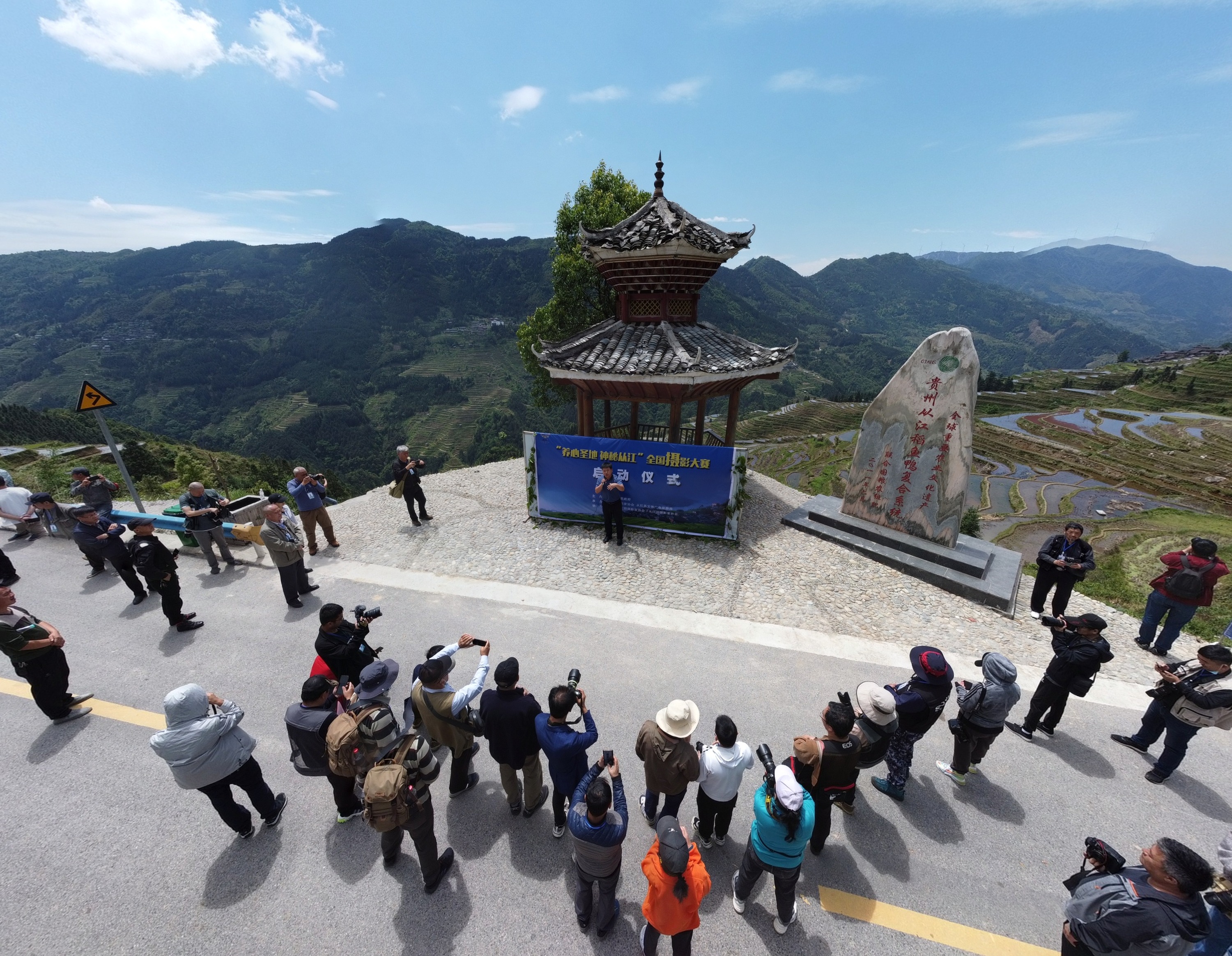 5月2日,为更好的推介贵州从江灿烂的民族文化、旖旎的自然风光,进一步提升从江旅游的新形象和知名度,同时,为即将到来的“中国旅游日”做好场景展示,由37名贵州知名摄影家组成的采风团,今天走进从江县的加榜梯田。
