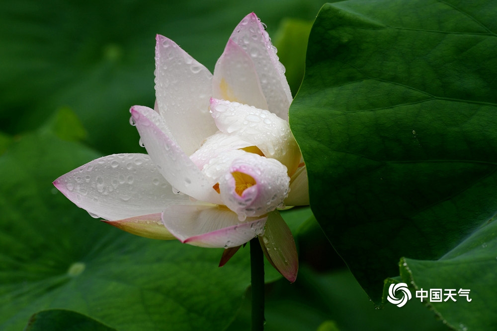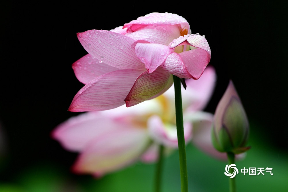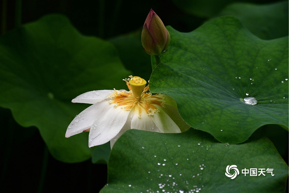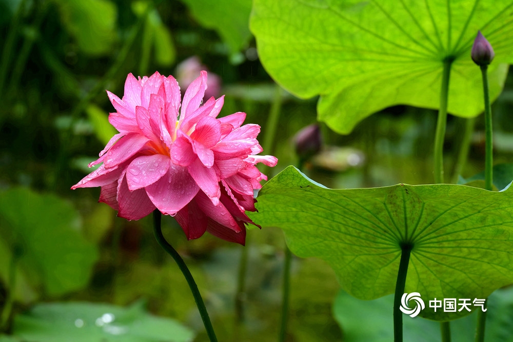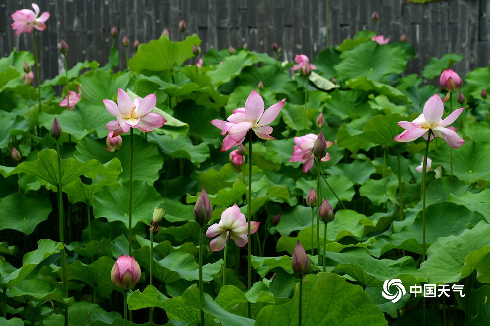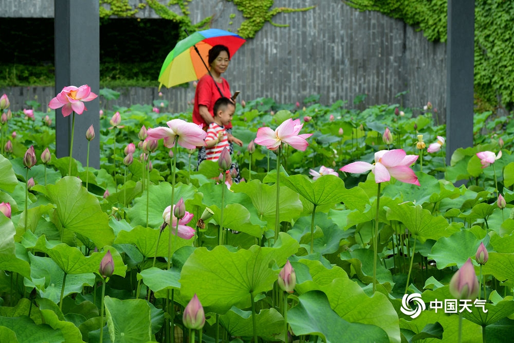中国天气网讯 6月10日,浙江金华市区梅园荷花池内,多姿多彩的荷花在雨中含苞绽放,一朵朵亭亭玉立、娇艳醉人的荷花,宛如出浴的凌波仙子,美不胜收,吸引市民和游客前来赏荷拍照。(图文/时补法)