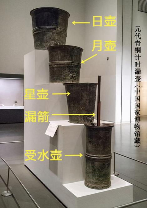 漏壶分播水壶和受水壶两部分(图3),播水壶分二至四层,均有小孔,可滴水,最后流入受水壶,受水壶里有立箭,箭上刻分100刻,箭随蓄水逐渐上升,露出刻数,以显示时间。