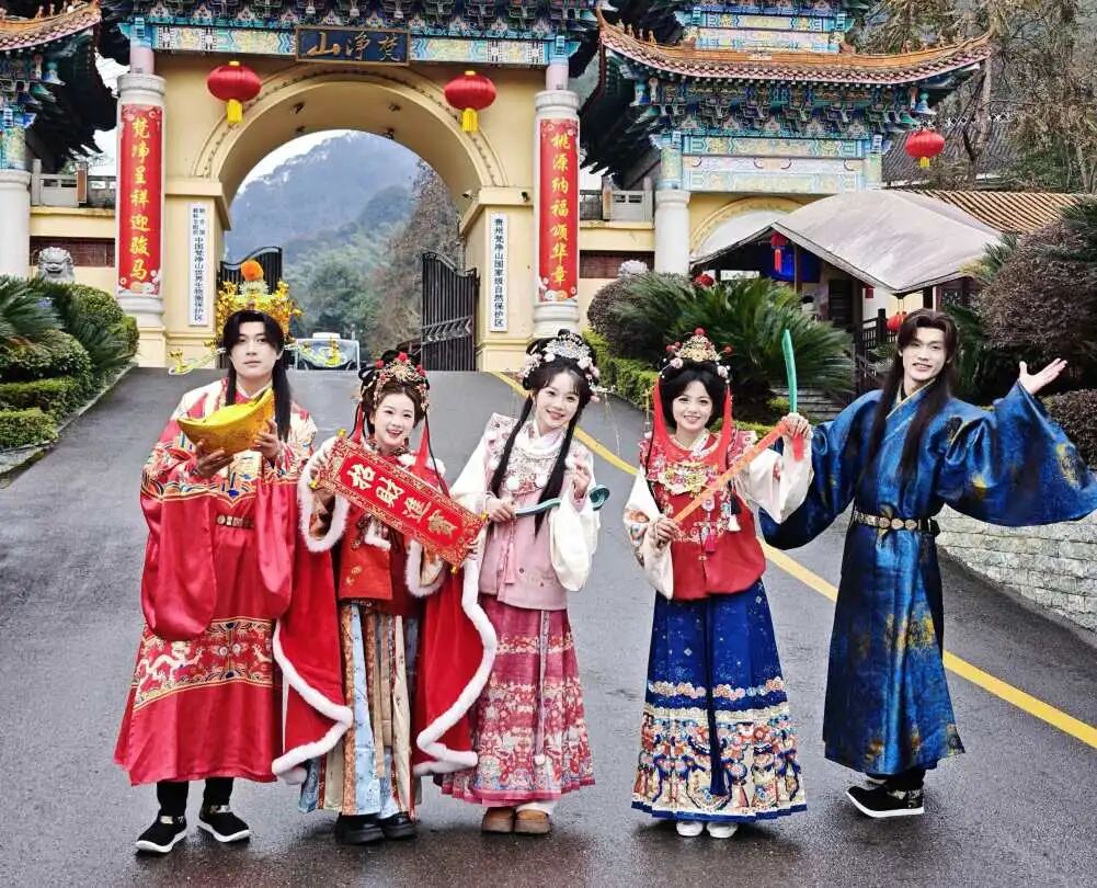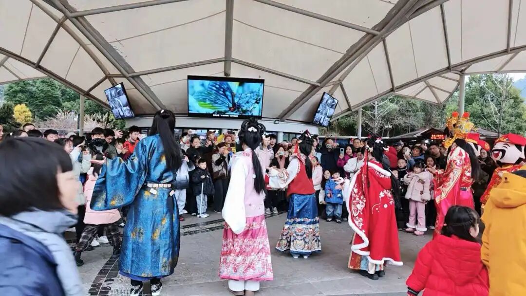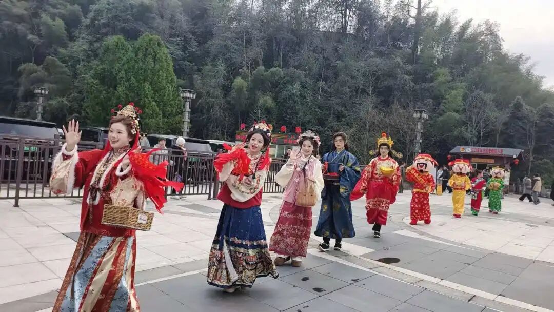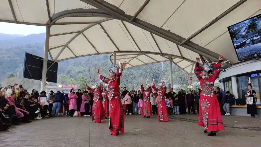 为深挖本土文化魅力,活动以多元演绎为抓手,打造沉浸式文化体验。景区推出“财神送福”NPC新春巡游,演员身着财神服饰,沿游客中心、莲花广场等核心点位巡游,与游客暖心互动、合影留念,随机派送新春盲盒,将福气送至游客身边;同时邀请专业演艺团队,带来铜仁少数民族歌舞、非遗傩戏特色表演,穿插趣味互动环节,为参与游客送上朱砂串、祈福带等新春好礼,让游客在登高赏景的同时,沉浸式感受铜仁本土文化的独特魅力。